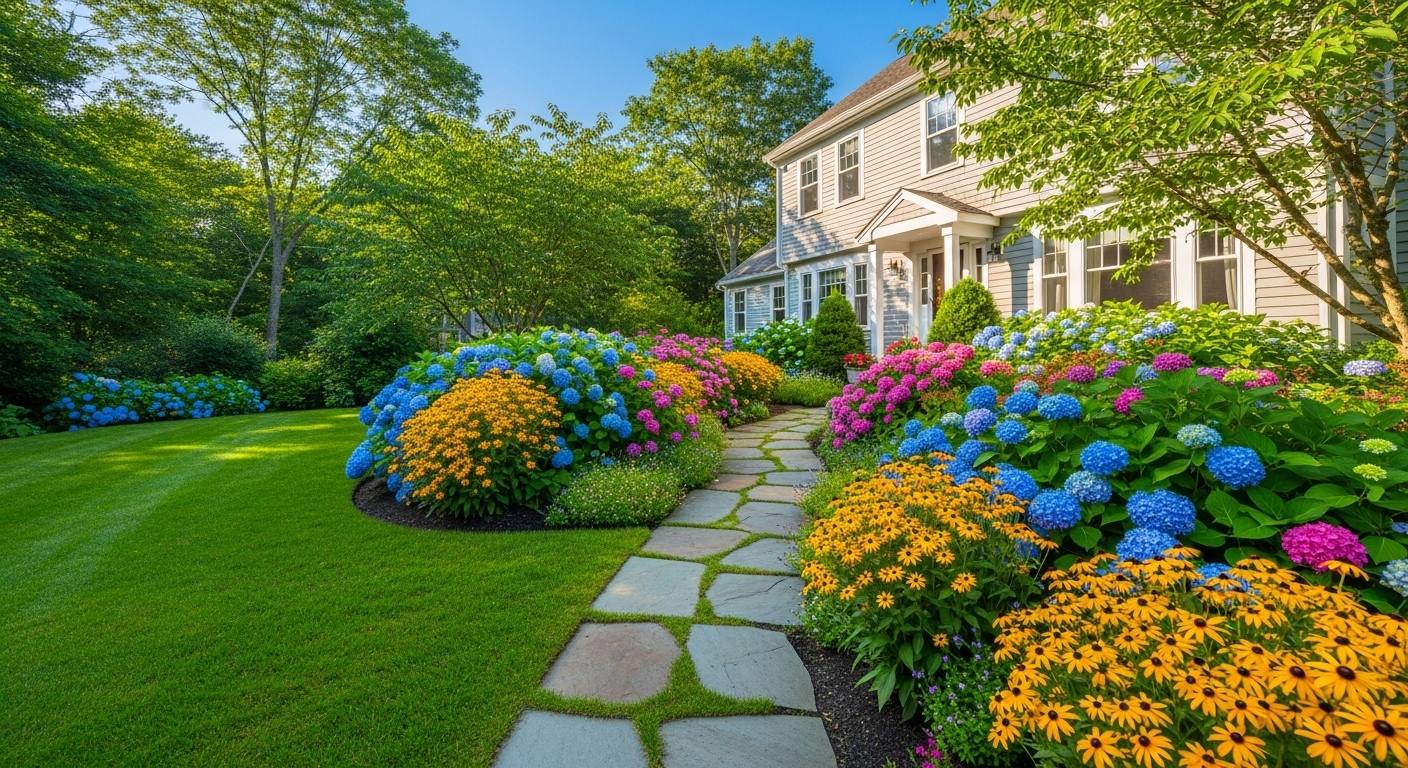 Perennial beds, native plantings, and custom garden layouts designed for Maine's growing season.